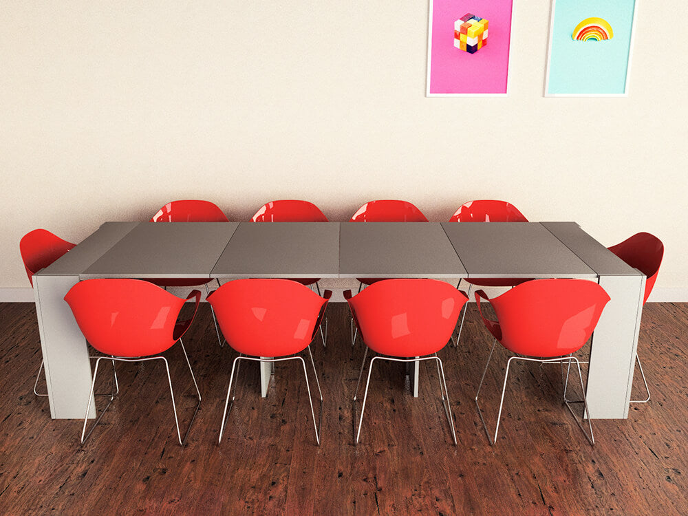 Ausziehbarer Konsolentisch in Melamin 42/302x95x76cm TFT Moon Beige Matt Grey