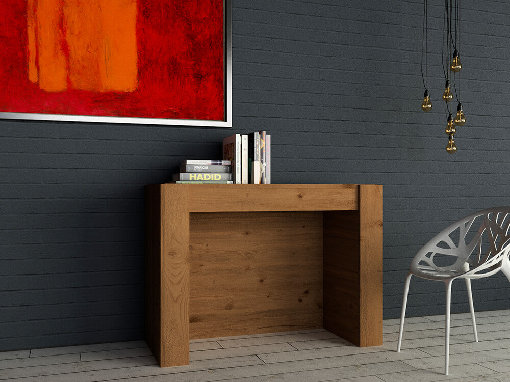 Ausziehbarer Konsolentisch aus Melamin 42/302 x 95 x 76 cm TFT Mondeiche mit Ästen