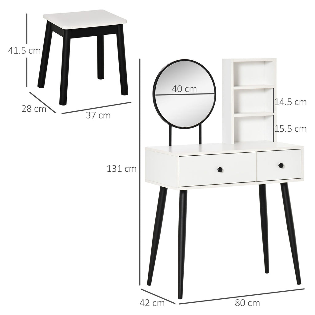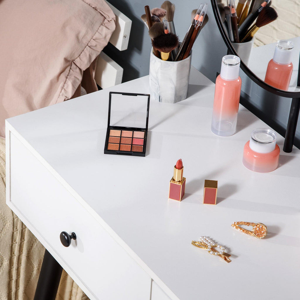 Das Schminktisch-Set mit passendem Hocker ist die perfekte Wahl für jeden Beauty-Addict! Durch sein modernes Design lässt er sich perfekt mit unterschiedlichen Möbelstilen kombinieren und bietet viel Platz für Ordnung bei Make-up und Beauty-Accessoires. Die Struktur des Schminktisches ist solide und langlebig. Mit dem integrierten Spiegel und Hocker können Sie sich bequem schminken und Ihren Schönheitsritualen folgen. Lass ihn nicht entkommen!