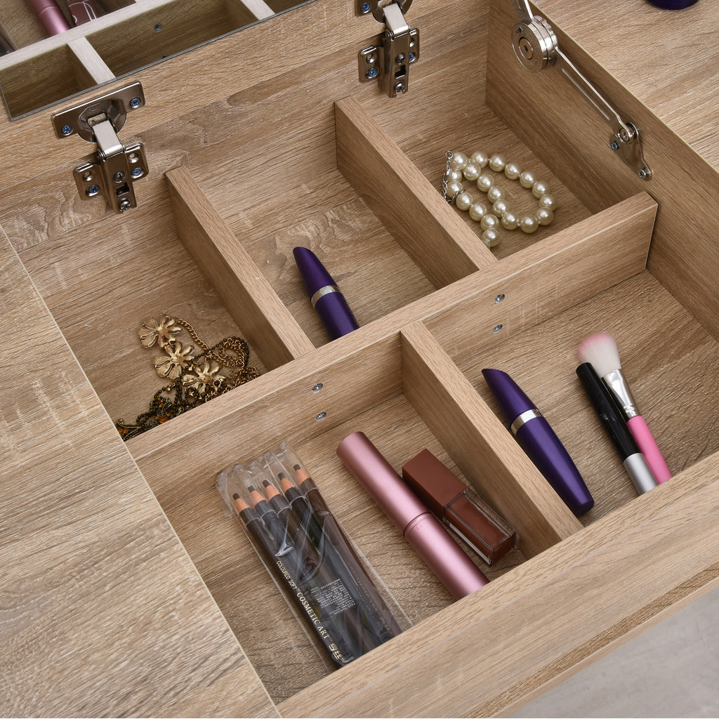 - 2 Schubladen und 5 Ablagefächer bieten ausreichend Platz zur Aufbewahrung Ihrer Kosmetika und Ihres Schmucks