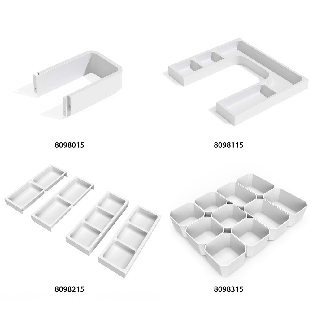 Scopri la gamma di accessori da bagno Tidy, la soluzione perfetta per sfruttare lo spazio interno dei mobili da bagno e organizzare i tuoi cosmetici. Possono essere combinati liberamente in base alle dimensioni del cassetto che hai a disposizione, con i diversi accessori per il cassetto Tidy.