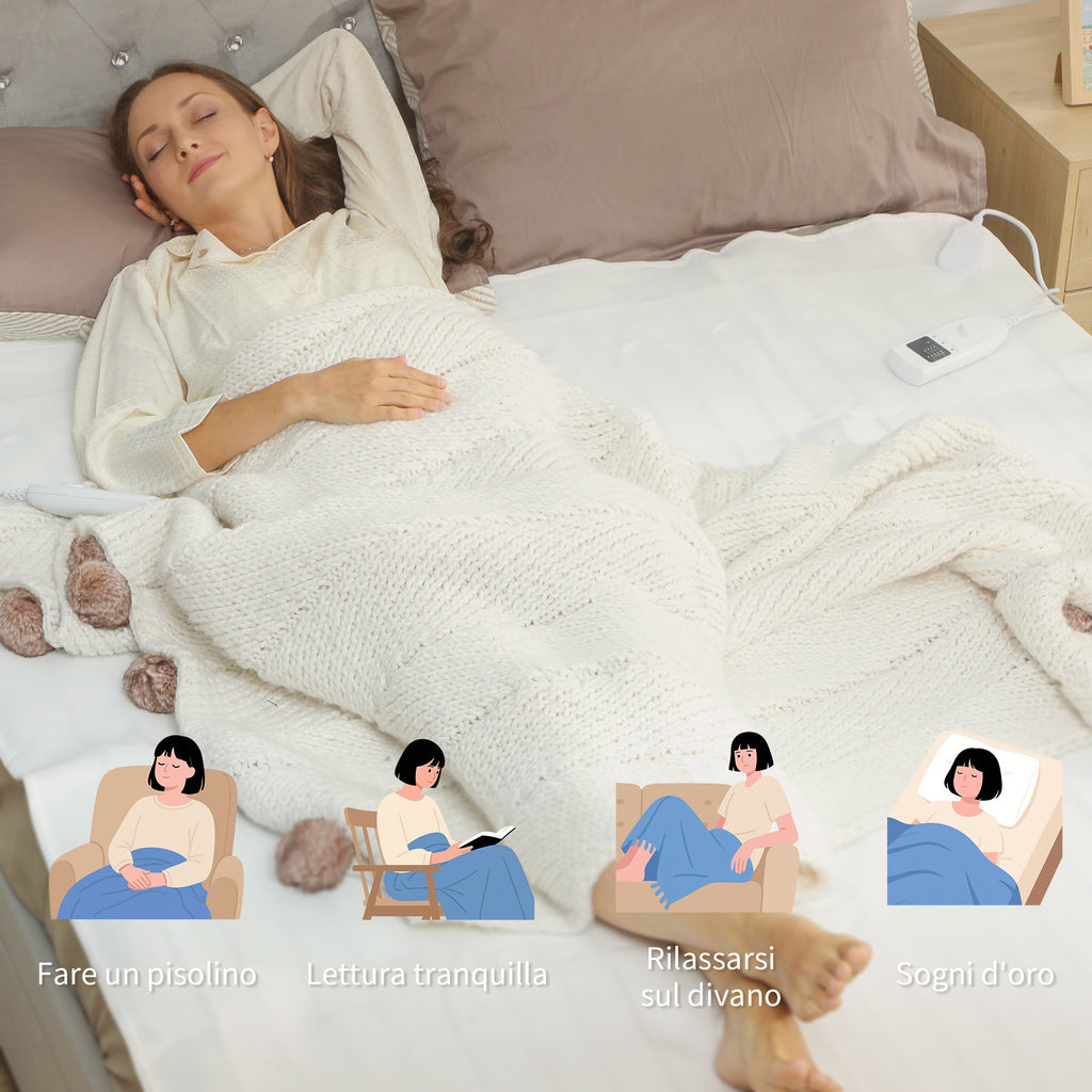 Coperta Elettrica 160x140 cm con 5 Livelli di Calore e 2 Zone di Controllo Indipendenti in Poliestere Bianco