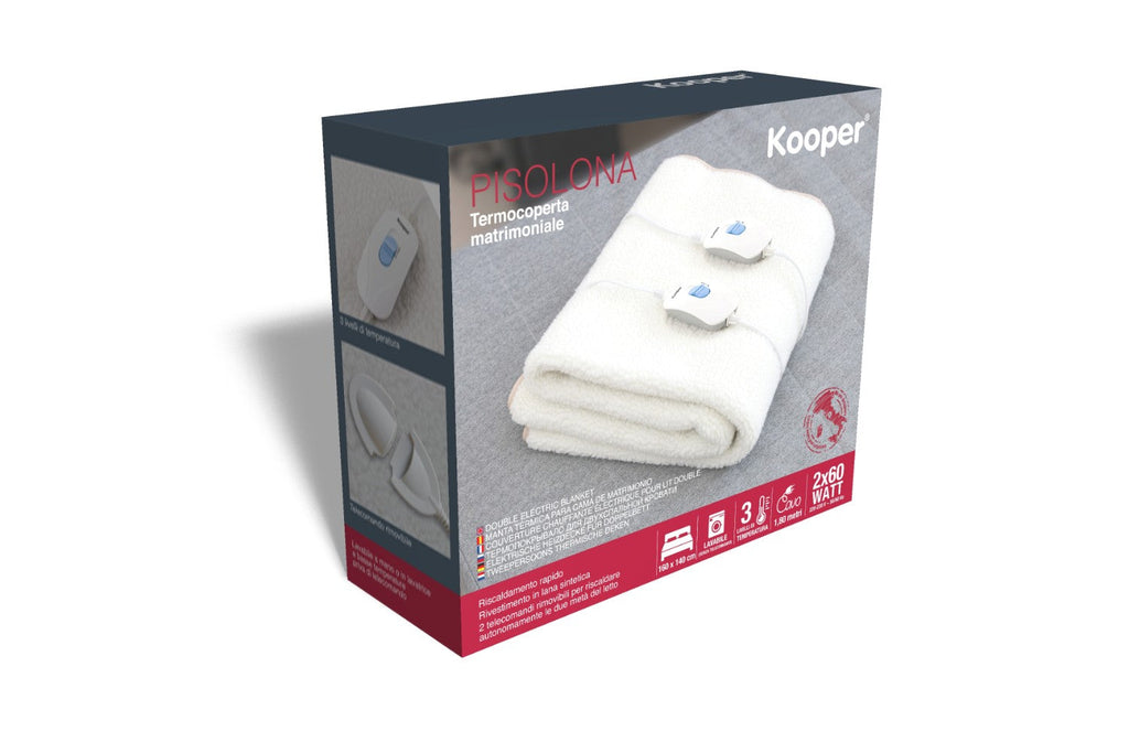 Elektrische Wärmedecke Doppelbettwärmer aus synthetischer Wolle 160x140 cm 60x2W Kooper Pisolona