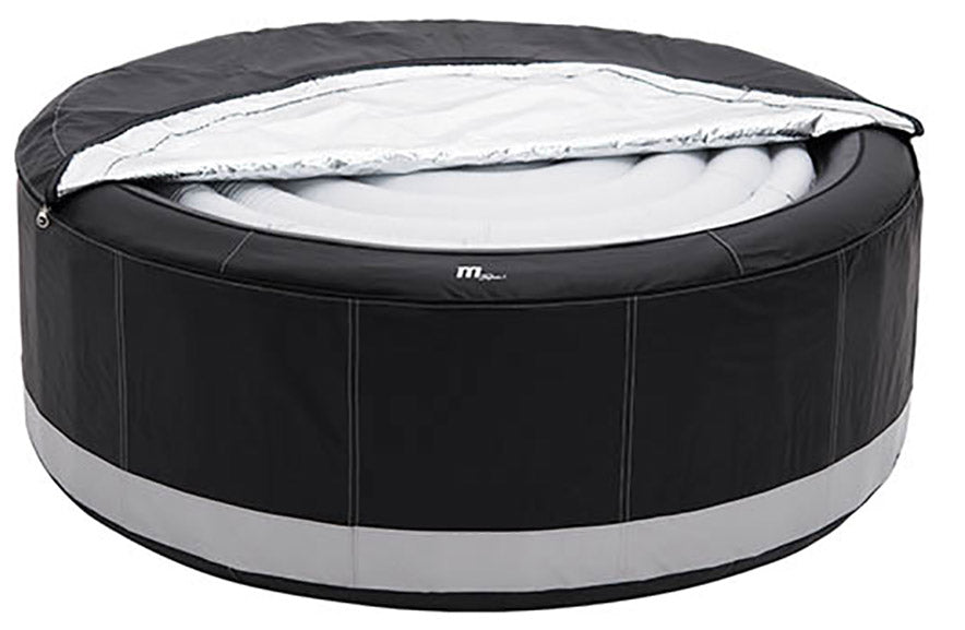 Setzen Sie die Abdeckung auf das Spa. Die aufblasbare Luftkammer sorgt für eine bessere Wärmespeicherung und einen besseren Regenabfluss.