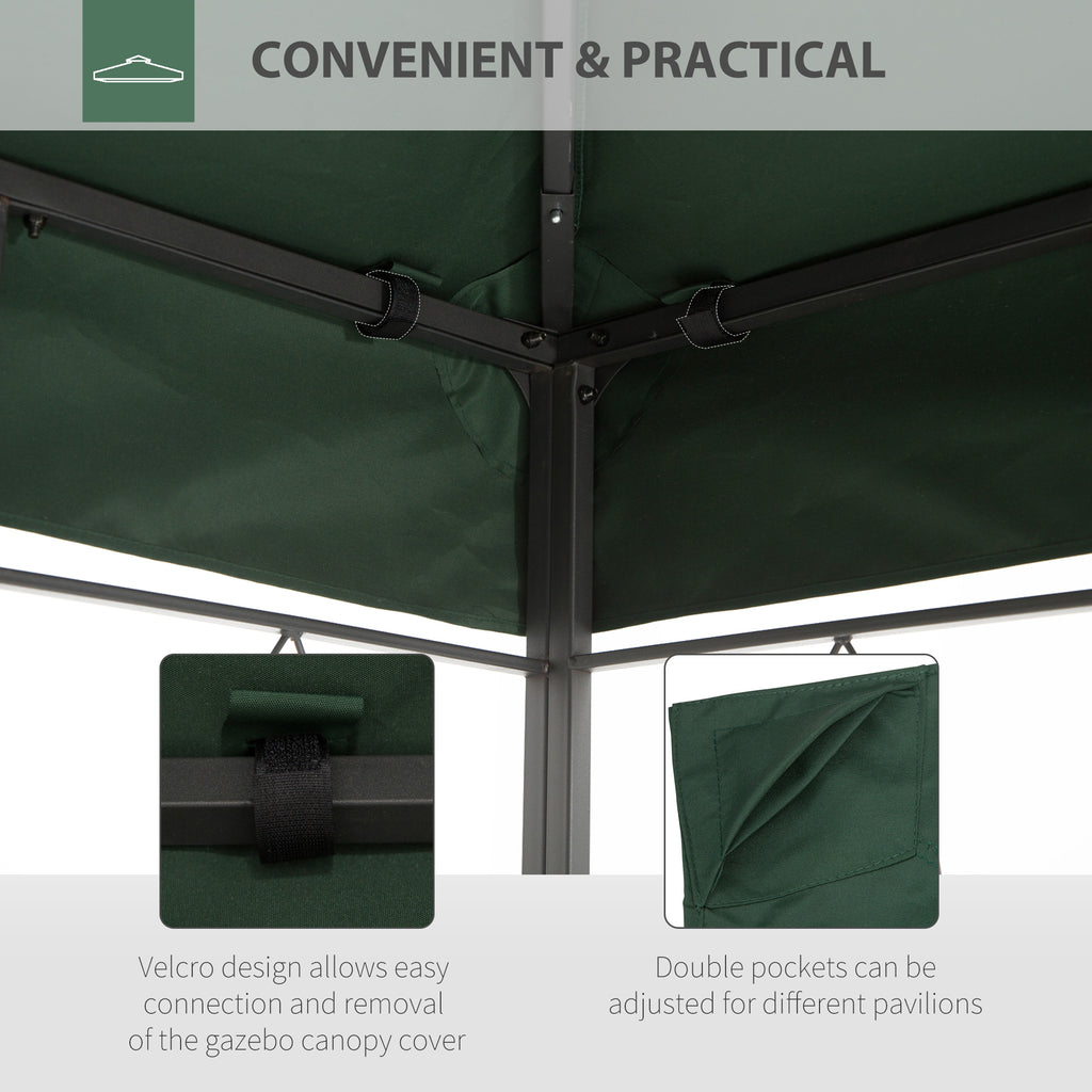 Copertura per Gazebo a 2 Livelli con Cinghie e 10 Fori di Drenaggio 4x3m in Poliestere Verde