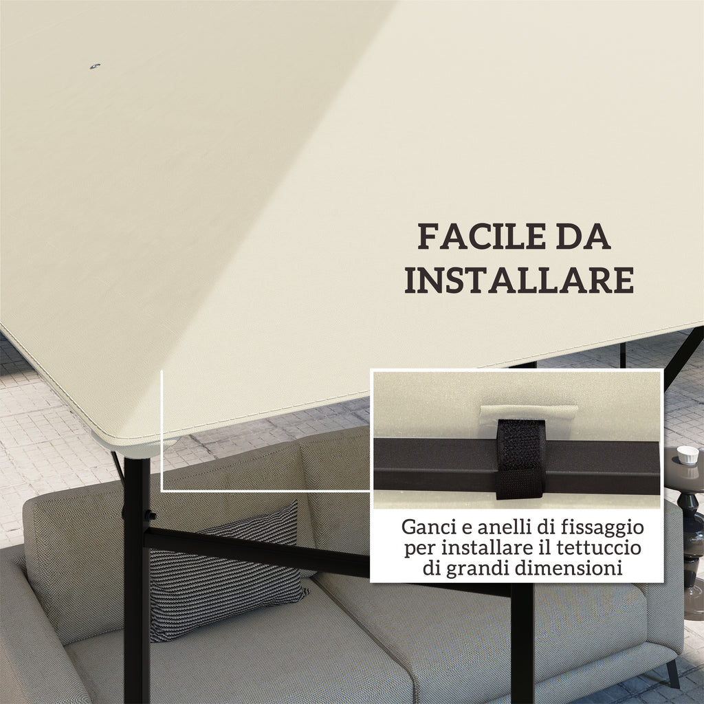 Copertura per Gazebo Pergola 298x298 cm con 8 Fori di Drenaggio in Tessuto Oxford 600D Bianco Crema