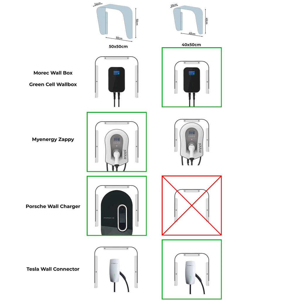 - Ripara le Wallbox dal sole diretto e dai raggi UV che scolorano e invecchiano la plastica, accorciando la vite utile del dispositivo riducendo l'efficienza della wallbox, aumenta il tempo ed il costo della ricarica, e può danneggiare i componenti elettronici
