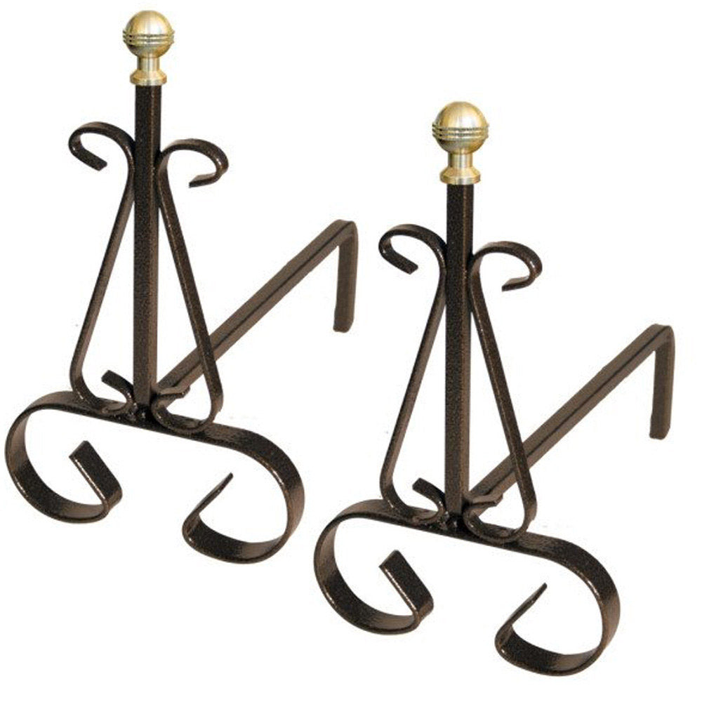 Paar Feuerböcke 41x15x40 cm für Kamine und Öfen aus Schmiedeeisen mit Messingknöpfen