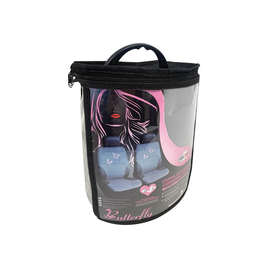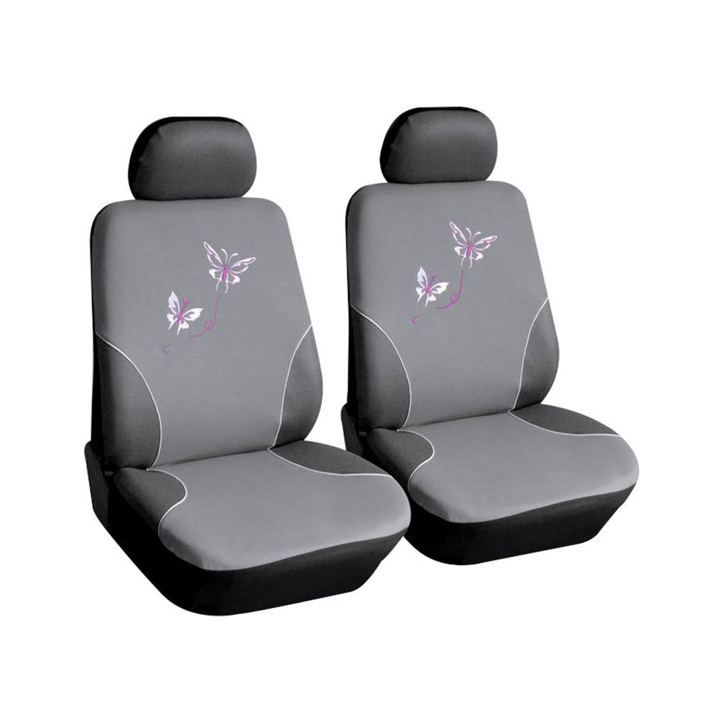 Paar universelle Vordersitzbezüge aus grauem Butterfly-Polyester und Schwamm