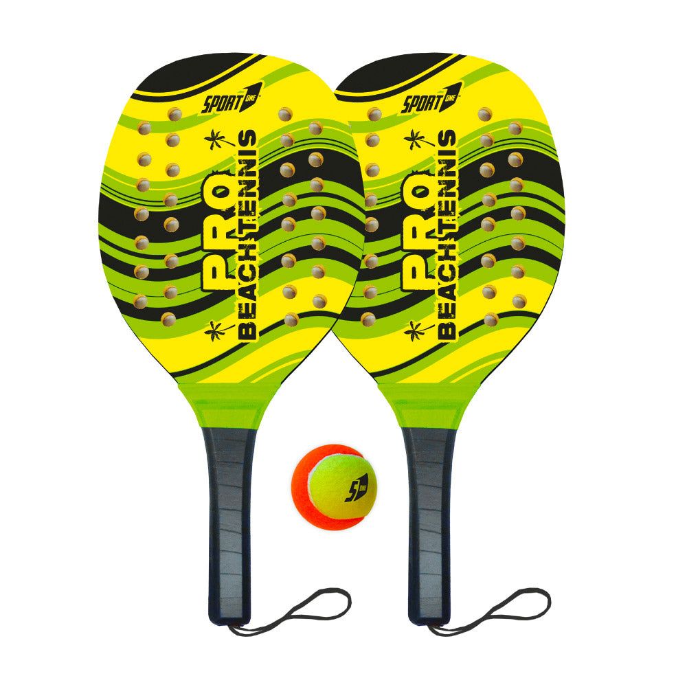 Questa coppia di racchette da spiaggia in legno è l'accessorio perfetto per divertirsi sulla spiaggia. Le racchette sono realizzate in legno di alta qualità e sono decorate con una vivace grafica colorata che le rende davvero accattivanti. La confezione include anche una pallina professionale, ideale per sfide divertenti e competizioni sulla sabbia. Con queste racchette da spiaggia, potrai trascorrere giornate indimenticabili in compagnia di amici e famiglia, godendoti il mare e il sole in totale spensieratezza.