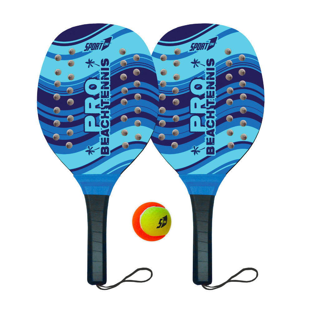 Coppia di Racchettoni da Spiaggia in Legno con Pallina Professionale Blu o Giallo