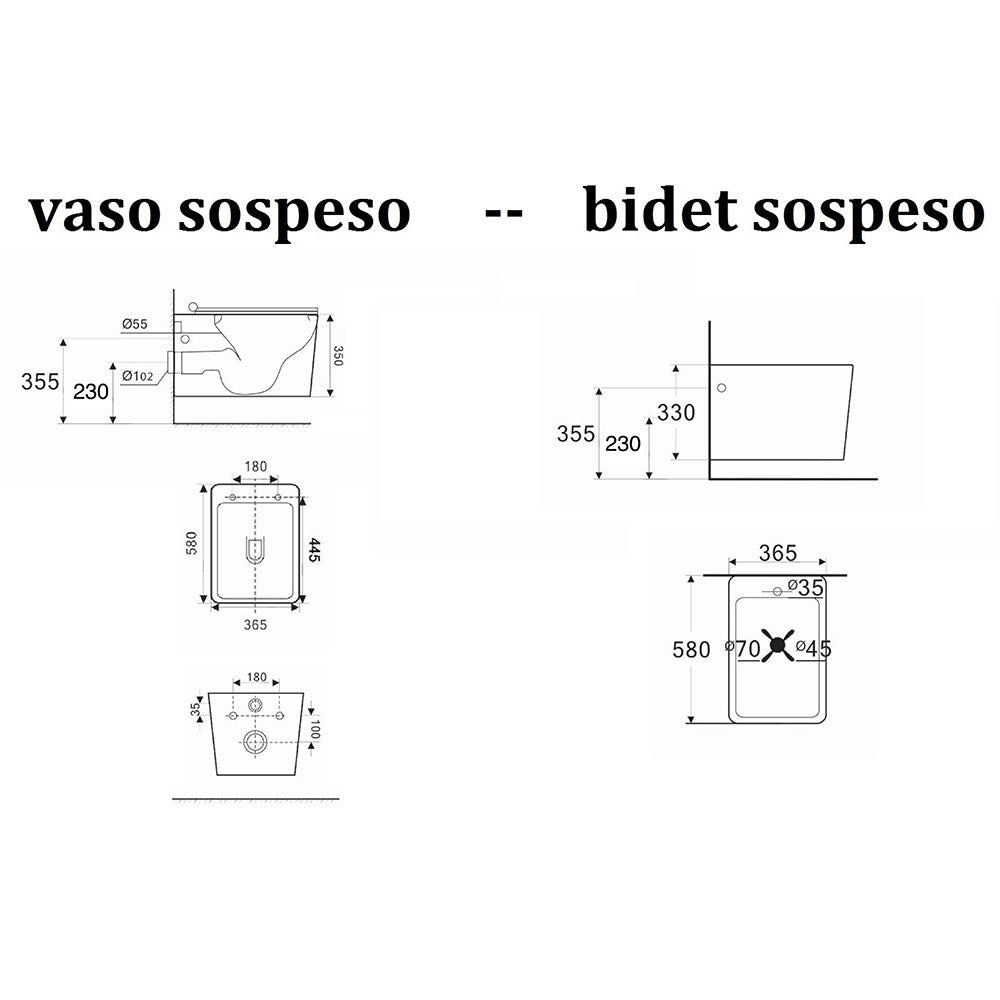 Das Sortiment ist komplett mit WC , Bidet und Soft-Close-WC-Sitz mit langsam schließenden Messingscharnieren. Befestigungsmaterial enthalten.
