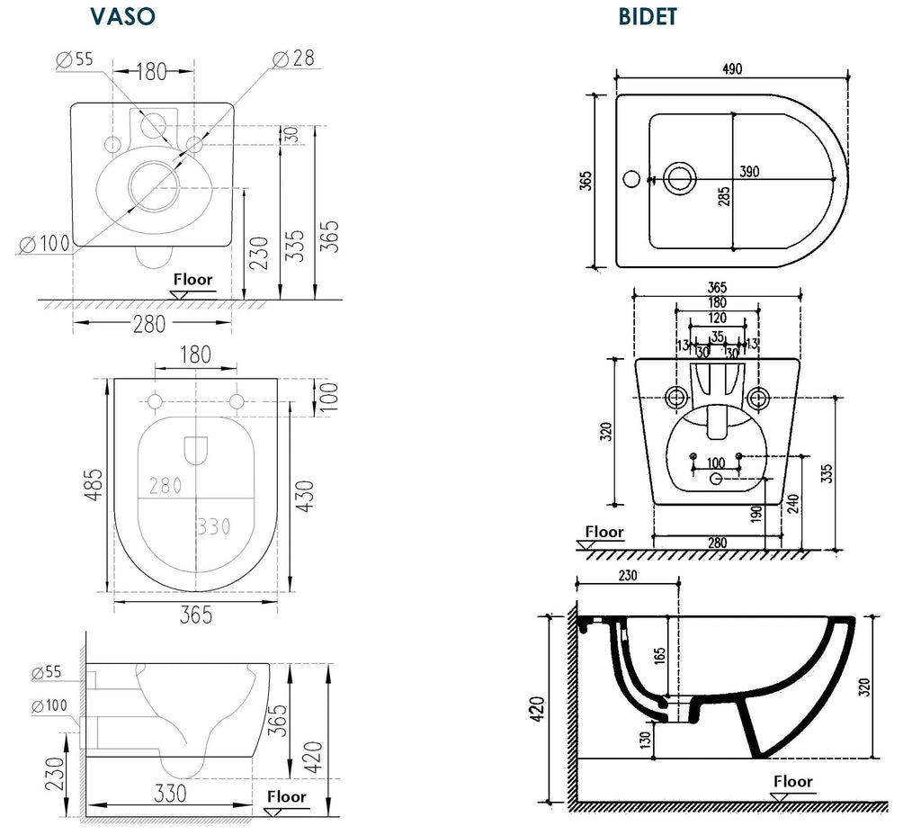 - Maße Bidet: p 48,5 x l 36,5 x h 32 cm
