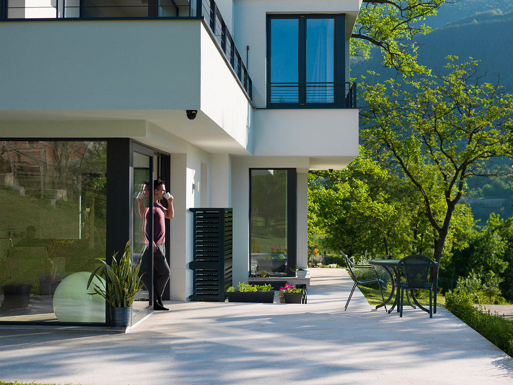 Big Blade è la cover per pompe di calore di grandi dimensioni dalle forme architettoniche rigorose ed eleganti. Protegge l'unità esterna da pioggia e grandine, riduce il rumore, valorizza la facciata.