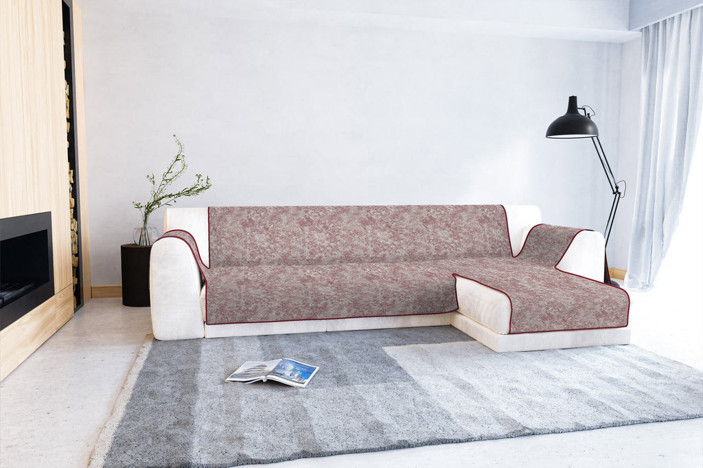 Sofabezug mit rechter Halbinsel aus bordeauxfarbenem Polyester und Baumwolle