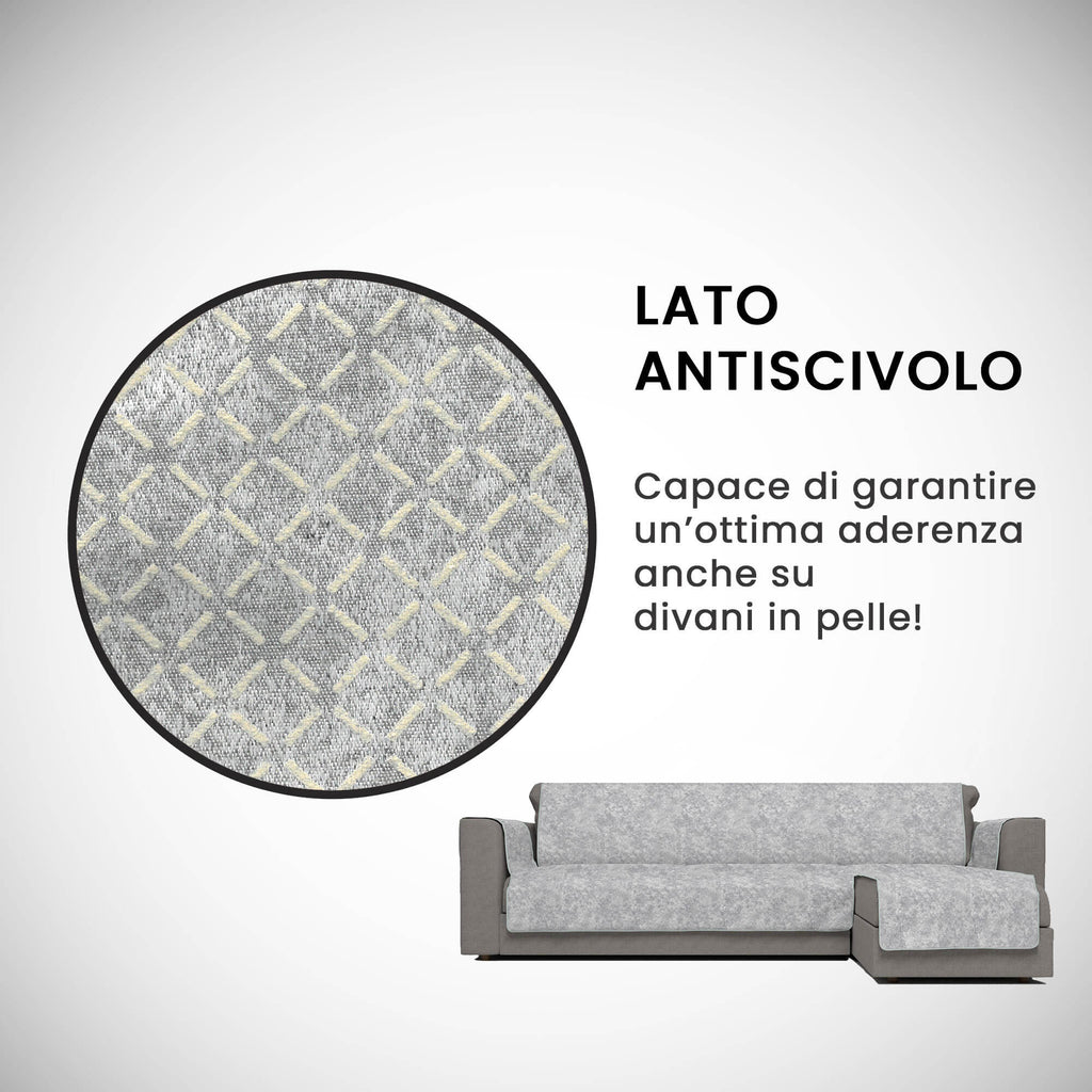 Sofabezug mit rutschfester Gummiunterseite, damit der Artikel perfekt auf dem Sofa haftet. Widerstandsfähiger Artikel, der sich an alle Arten von Sofas anpassen lässt, insbesondere an Ledersofas, bei denen normale Sofabezüge zum Verrutschen neigen. Artikel ausgestattet mit Halbinsel rechts bei frontaler Betrachtung des Artikels. Artikel Hergestellt in Italien.