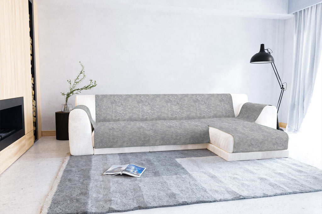 Sofabezug mit rechter Halbinsel aus hellgrauem Polyester und Baumwolle