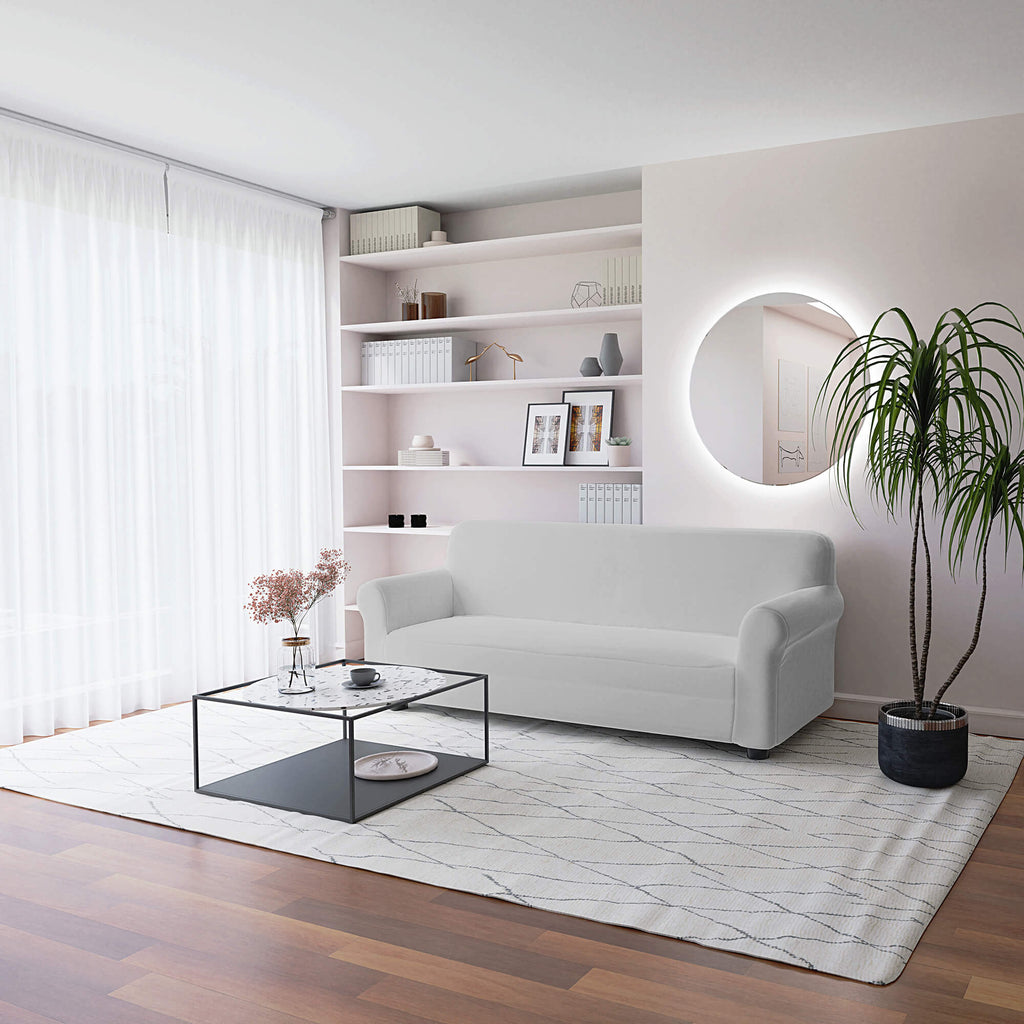 Stretch-Sofabezug aus hellgrauem Dahlia-Polyester