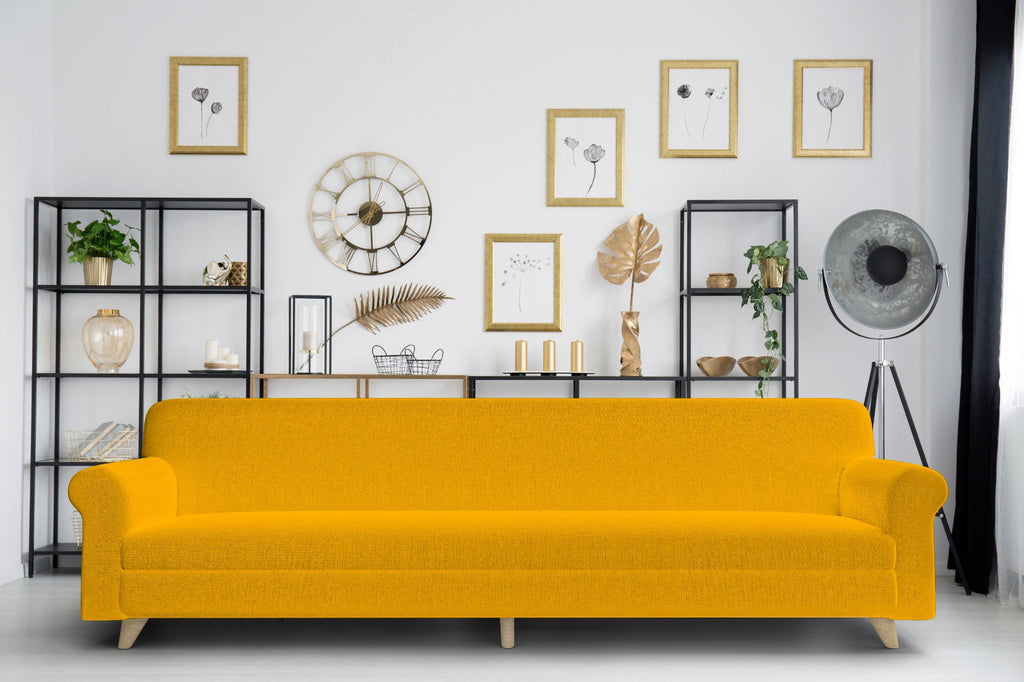 Bezug für 4-Sitzer-Stretchsofa aus gelbem Polyester