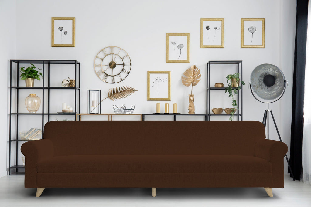 Bezug für 4-Sitzer-Stretchsofa aus braunem Polyester