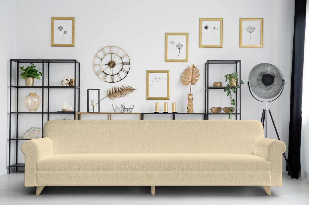 4-Sitzer-Stretchsofabezug aus cremefarbenem Polyester