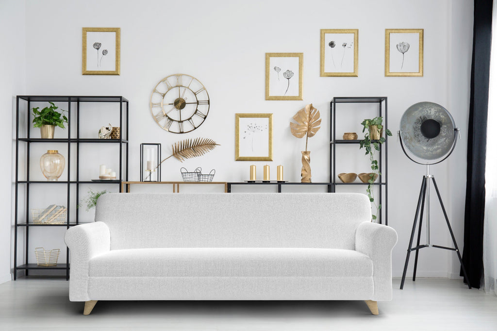 Sofabezug 1-, 2- und 3-Sitzer Stretch aus weißem Stoff