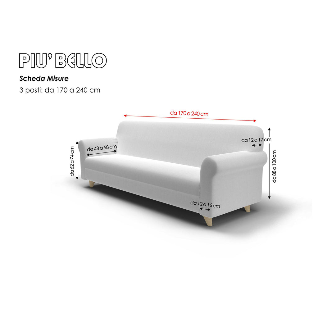 Geformter bi-elastischer Sofabezug mit glatter Struktur SCHÖNER! Hergestellt aus feinen Dekorationsstoffen mit präzisen Oberflächen und üppigen Größen , die dieses Produkt zu einem prestigeträchtigen Kleidungsstück machen, das die Atmosphäre Ihres Wohnzimmers mit einer einzigen Geste verwandelt und es eleganter und einladender macht. Genäht mit zugfesten und unsichtbaren Nähten mit einem umlaufenden Gummiband an der Basis, um perfekt am Sofa zu haften.