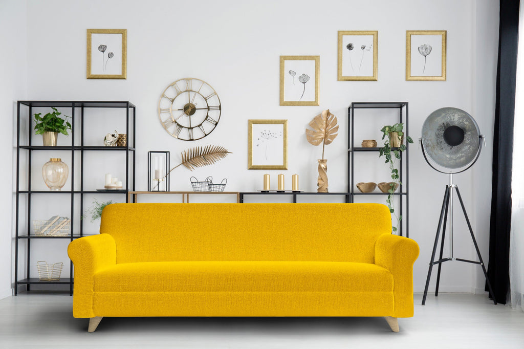 Sofabezug 1-, 2- und 3-Sitzer Stretch aus gelbem Stoff