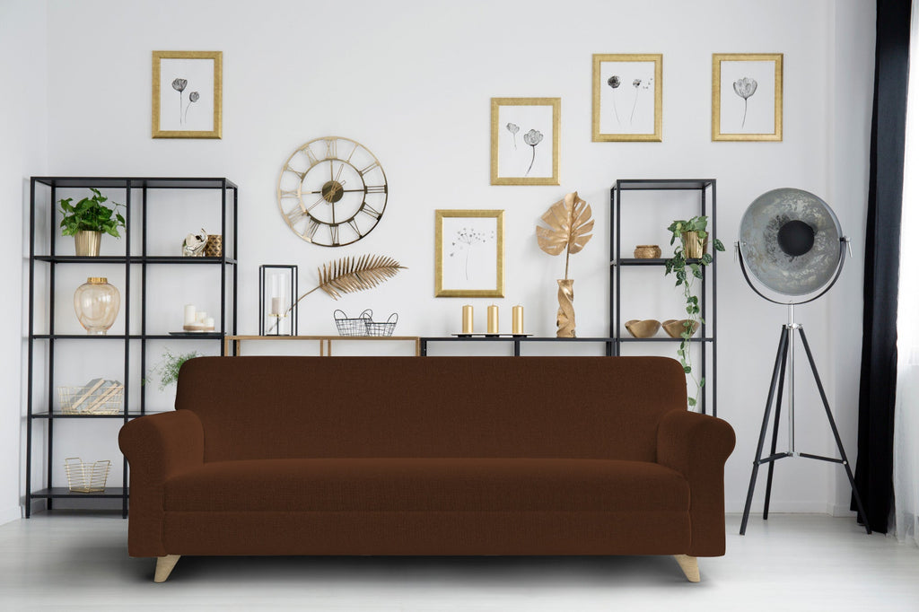 Bezug für 1-, 2- und 3-Sitzer-Stretchsofa aus braunem Stoff