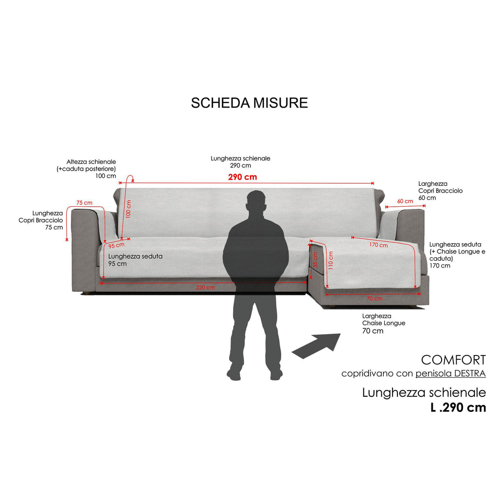 Rutschfester Komfort-Sofabezug, ausgestattet mit einer rutschfesten Gummiunterseite, damit der Artikel perfekt auf dem Sofa haftet. Widerstandsfähiger Artikel, der sich an alle Arten von Sofas anpassen lässt, insbesondere an Ledersofas, bei denen normale Sofabezüge zum Verrutschen neigen. Artikel ausgestattet mit Halbinsel rechts bei frontaler Betrachtung des Artikels. Handgefertigter Artikel, jedes Kleidungsstück kann einen leichten Farbunterschied haben, der durch das Herstellungsweben der Garne gegeben ist. Artikel Hergestellt in Italien.