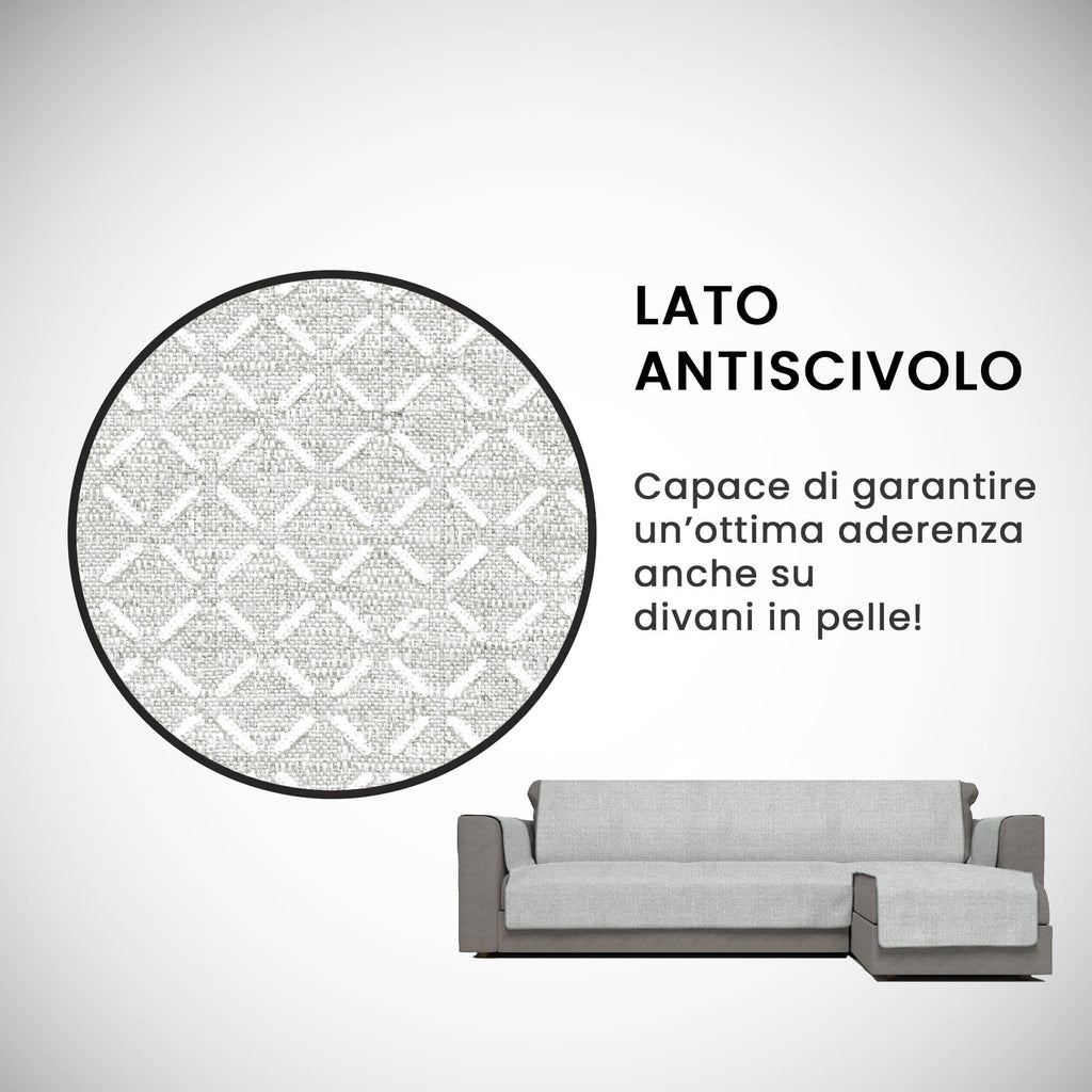 Rutschfester Komfort-Sofabezug, ausgestattet mit einer rutschfesten Gummiunterseite, damit der Artikel perfekt auf dem Sofa haftet. Widerstandsfähiger Artikel, der sich an alle Arten von Sofas anpassen lässt, insbesondere an Ledersofas, bei denen normale Sofabezüge zum Verrutschen neigen. Artikel ausgestattet mit Halbinsel rechts bei frontaler Betrachtung des Artikels. Handgefertigter Artikel, jedes Kleidungsstück kann einen leichten Farbunterschied haben, der durch das Herstellungsweben der Garne gegeben ist. Artikel Hergestellt in Italien.
