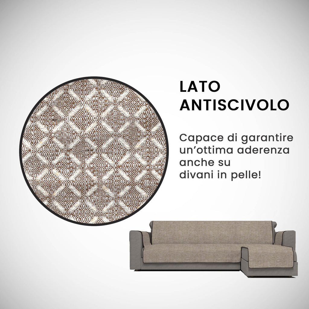 Rutschfester Komfort-Sofabezug, ausgestattet mit einer rutschfesten Gummiunterseite, damit der Artikel perfekt auf dem Sofa haftet. Widerstandsfähiger Artikel, der sich an alle Arten von Sofas anpassen lässt, insbesondere an Ledersofas, bei denen normale Sofabezüge zum Verrutschen neigen. Artikel ausgestattet mit Halbinsel rechts bei frontaler Betrachtung des Artikels. Handgefertigter Artikel, jedes Kleidungsstück kann einen leichten Farbunterschied haben, der durch das Herstellungsweben der Garne gegeben ist. Artikel Hergestellt in Italien.