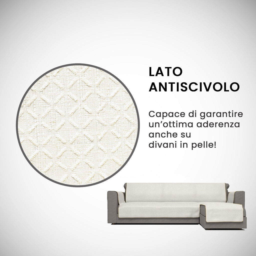 Rutschfester Komfort-Sofabezug , ausgestattet mit einer rutschfesten Gummiunterseite , damit der Artikel perfekt auf dem Sofa haftet. Widerstandsfähiger Artikel, der an alle Arten von Sofas angepasst werden kann , insbesondere an Ledersofas , bei denen normale Sofabezüge zum Verrutschen neigen. Artikel mit Halbinsel auf der rechten Seite, wenn man den Artikel von vorne betrachtet.