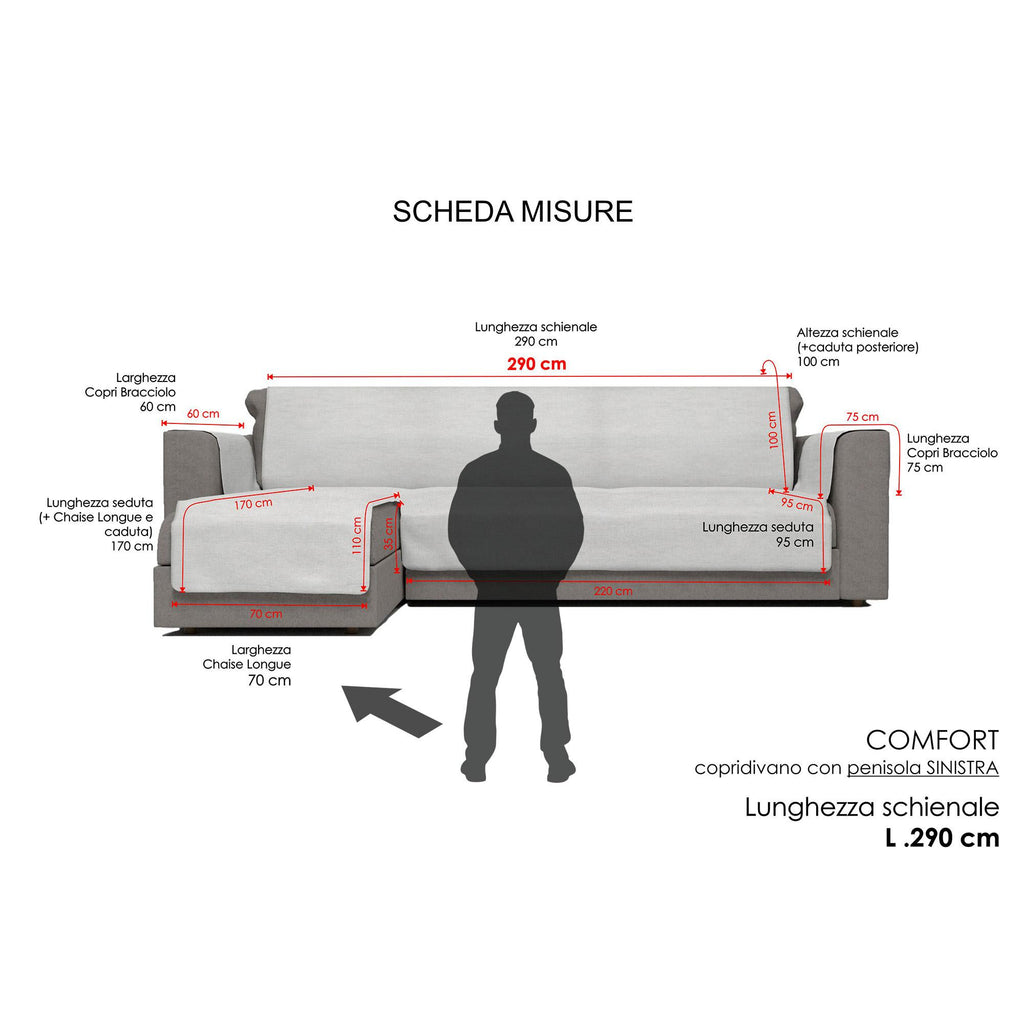 Rutschfester Komfort-Sofabezug, ausgestattet mit einer rutschfesten Gummiunterseite, damit der Artikel perfekt auf dem Sofa haftet. Widerstandsfähiger Artikel, der sich an alle Arten von Sofas anpassen lässt, insbesondere an Ledersofas, bei denen normale Sofabezüge zum Verrutschen neigen. Artikel versehen mit Halbinsel links bei frontaler Betrachtung des Artikels. Handgefertigter Artikel, jedes Kleidungsstück kann einen leichten Farbunterschied haben, der durch das Herstellungsweben der Garne gegeben ist. Artikel Hergestellt in Italien.