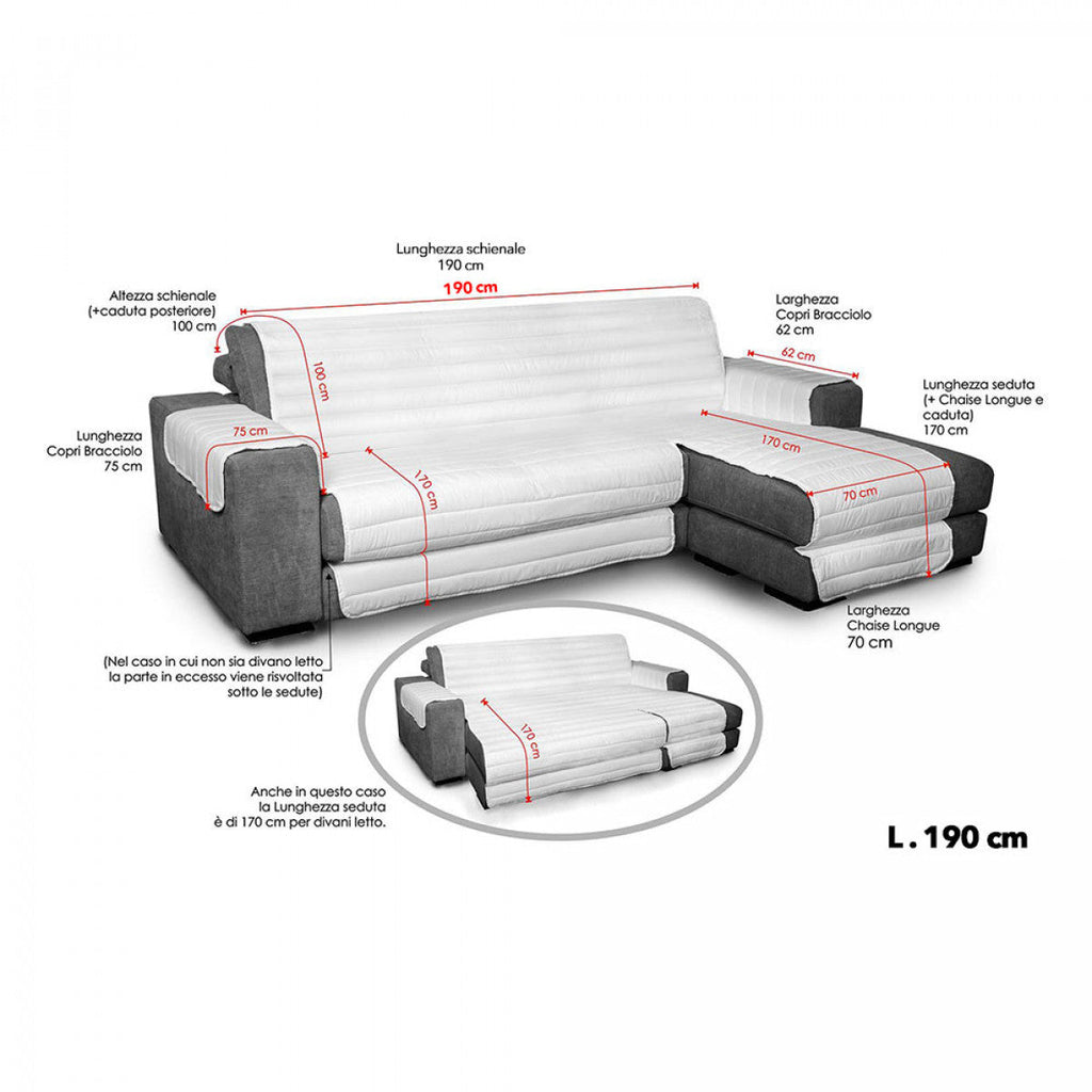 Gesteppter Sofabezug aus hypoallergener Mikrofaser mit linker Halbinsel . Sehr praktischer Sofabezug, der an jedes Sofa mit linker Halbinsel angepasst werden kann, hergestellt aus feinen Möbelstoffen mit präzisen Oberflächen und üppigen Größen, die dieses Produkt zu einem prestigeträchtigen Kleidungsstück machen und die Atmosphäre Ihres Wohnzimmers mit einer einzigen Geste verwandeln und es eleganter und einladender machen. Gesteppt in "Straight Cane" mit 7 cm Abstand zwischen einer Naht und der anderen, um es dünn, aber gleichzeitig weich zu machen. Komplett in Italien studiert, montiert und genäht.