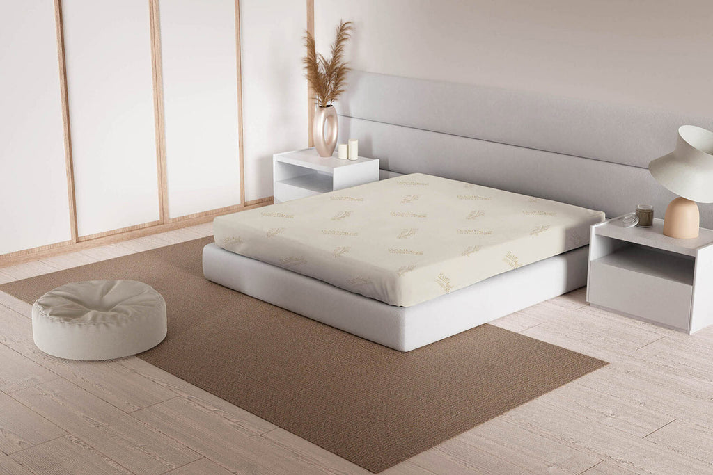 Stretch-Matratzenbezug aus cremefarbenem Polyester