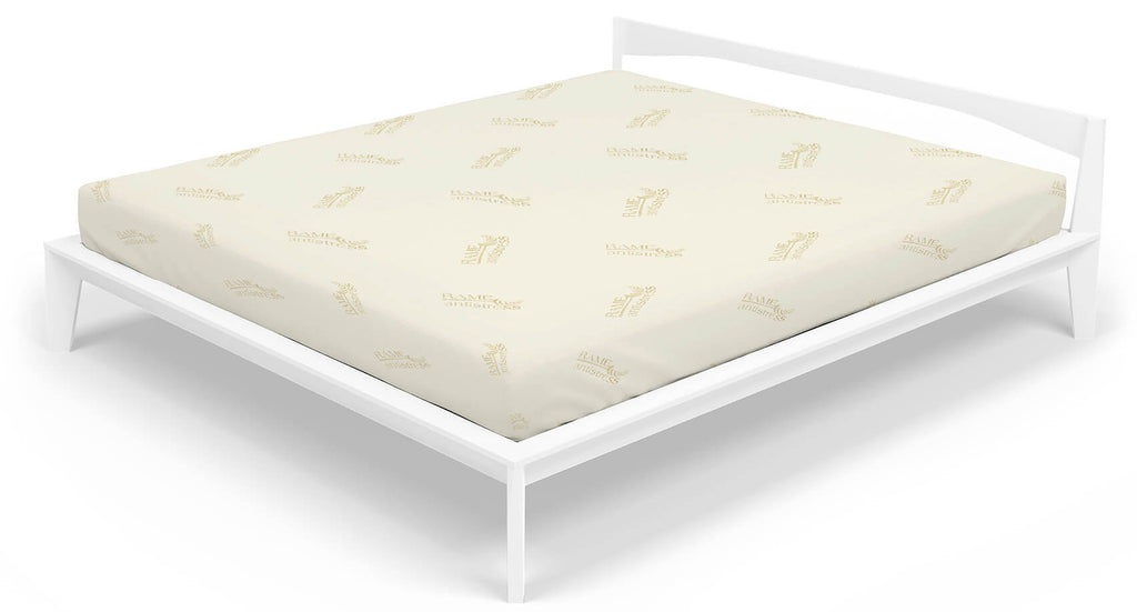 Elastischer Matratzenbezug, der sich perfekt an die Matratze anpasst und mit einem umlaufenden Gummiband ausgestattet ist. Artikel Hergestellt in Italien. Das verwendete Gewebe besteht aus 2 % Kupferfilament. Dieses Filament verleiht dem Gewebe folgende Eigenschaften:
