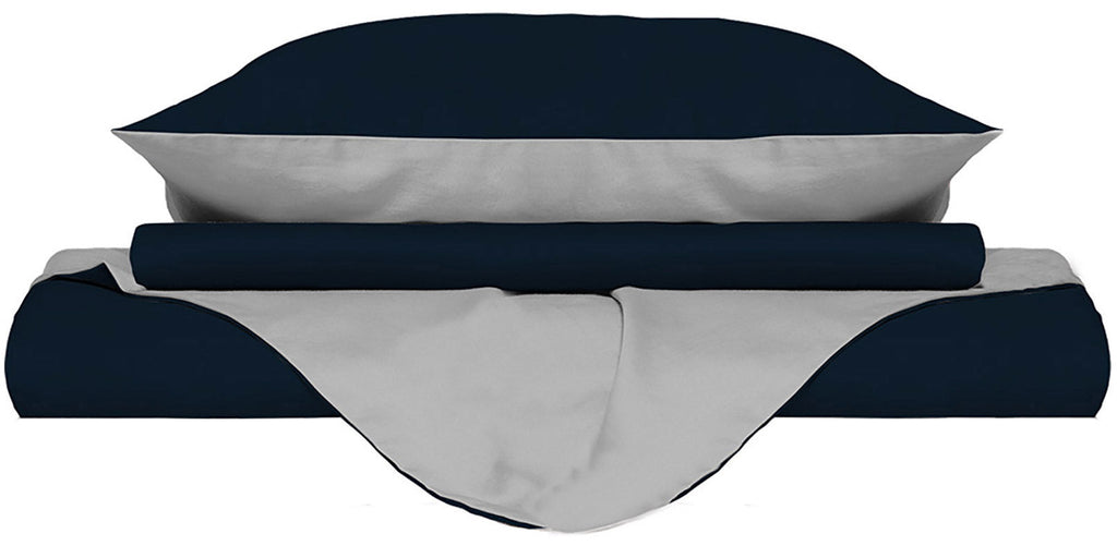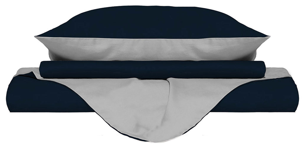 Bettbezug mit Tasche und doppelseitigen Kissenbezügen Dunkelblau / Hellgrau