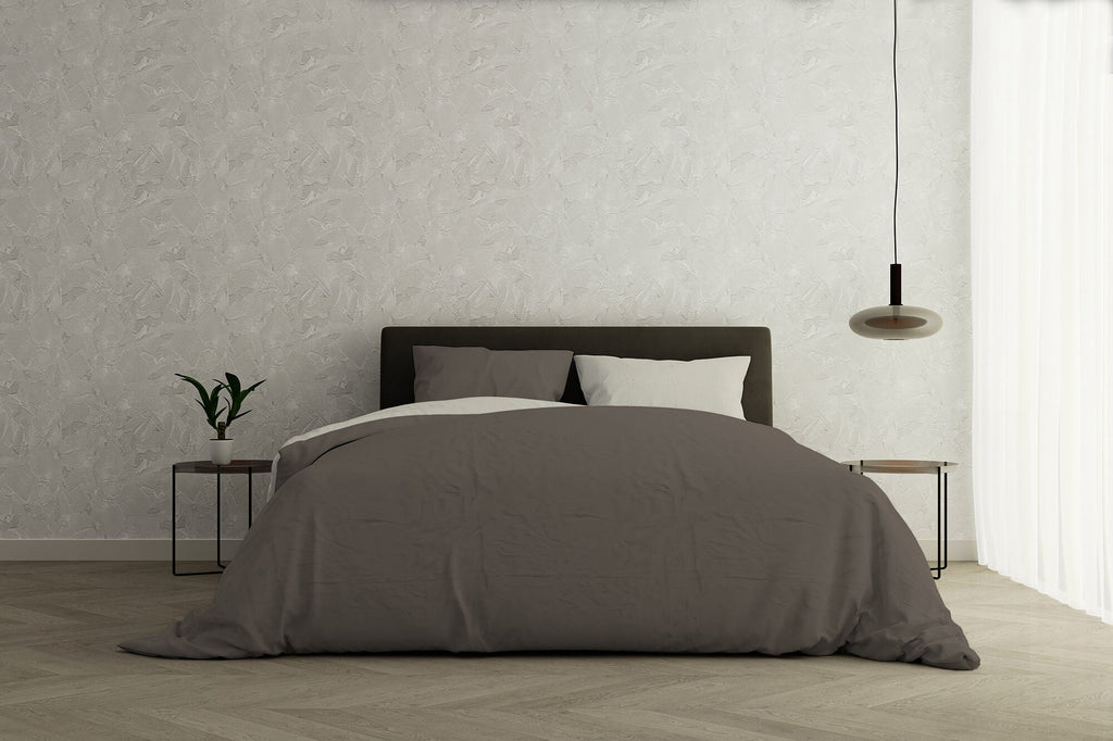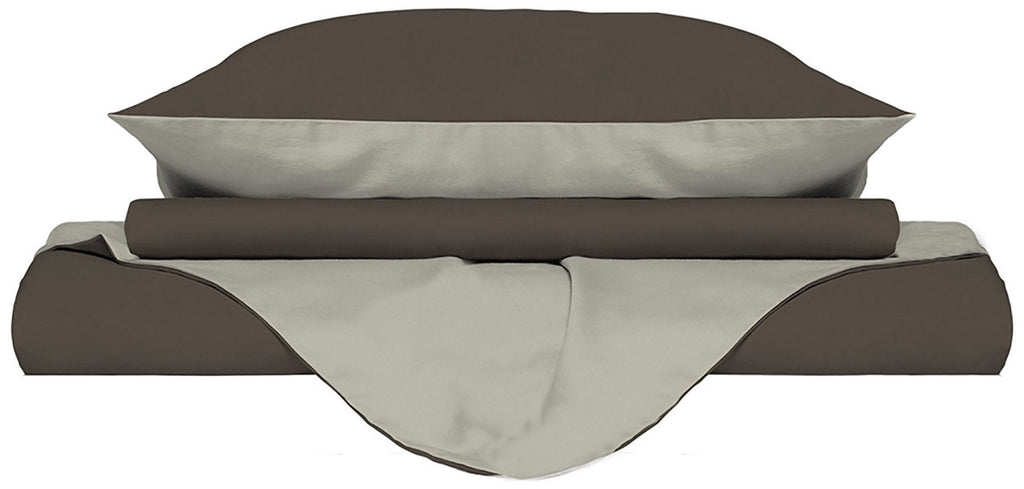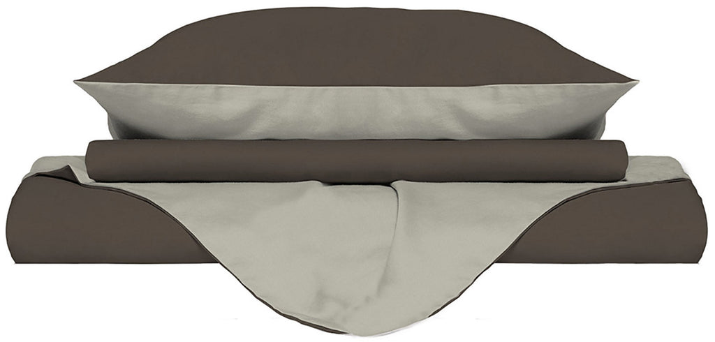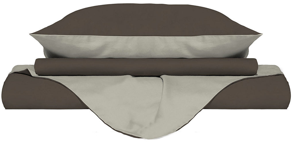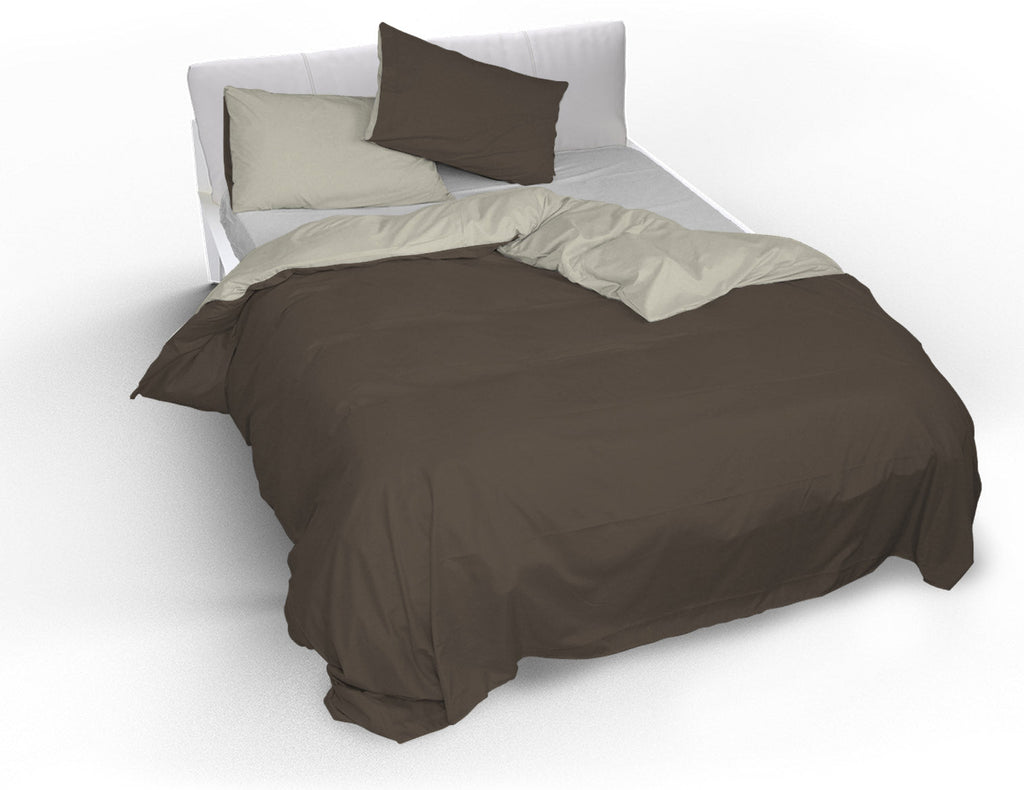 Bettbezug mit Tasche und doppelseitigen Kissenbezügen in Braun/Creme