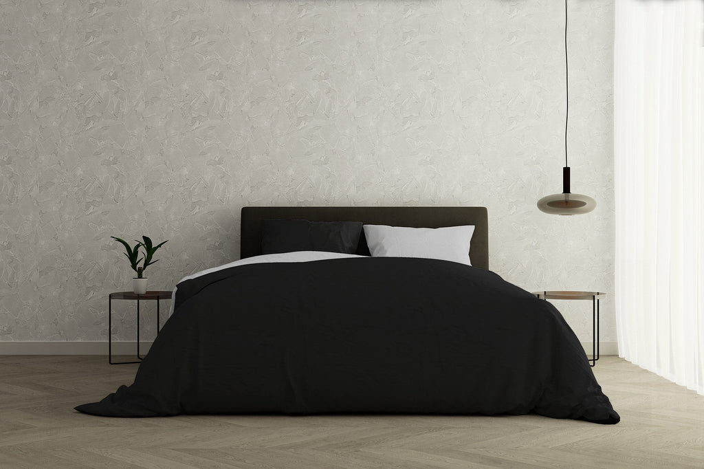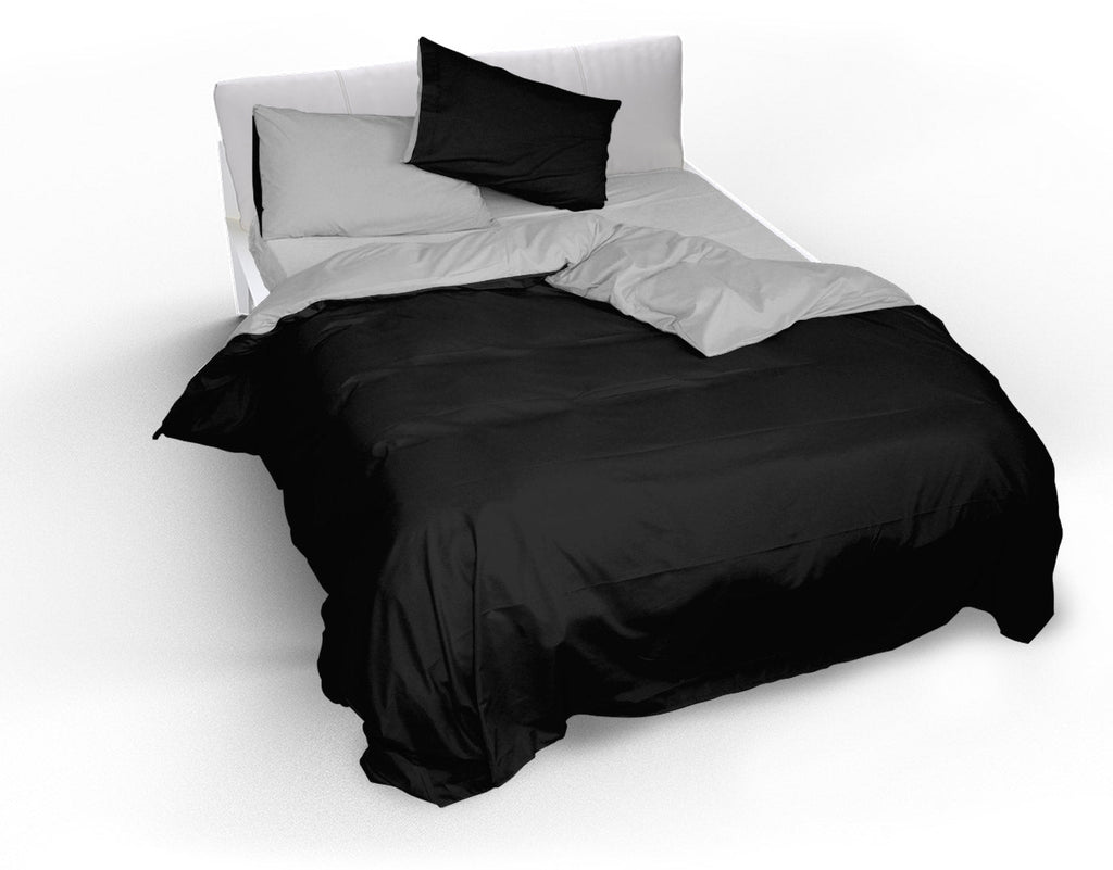 Bettbezug mit Tasche und Kissenbezügen, wendbar, Schwarz/Hellgrau