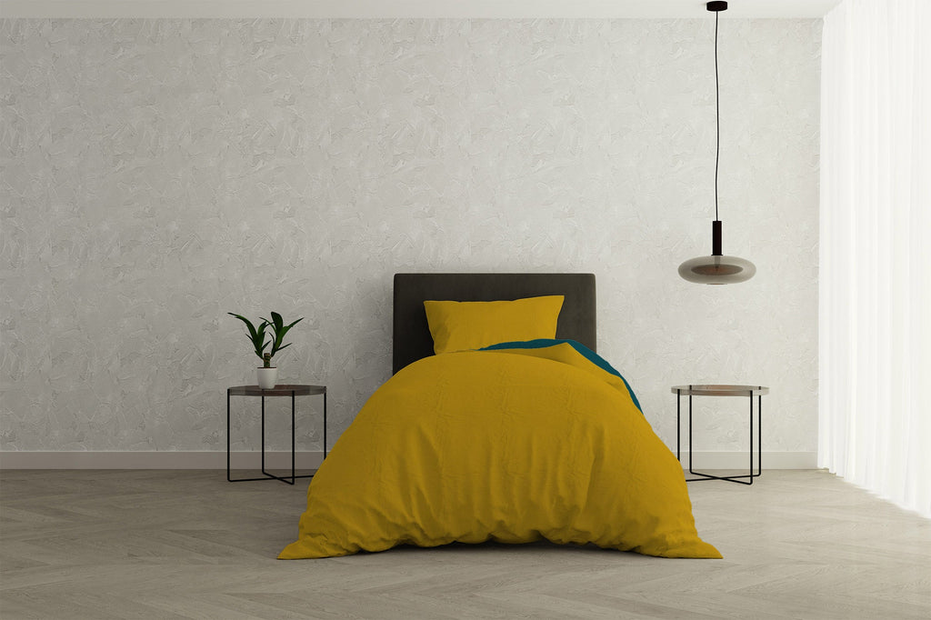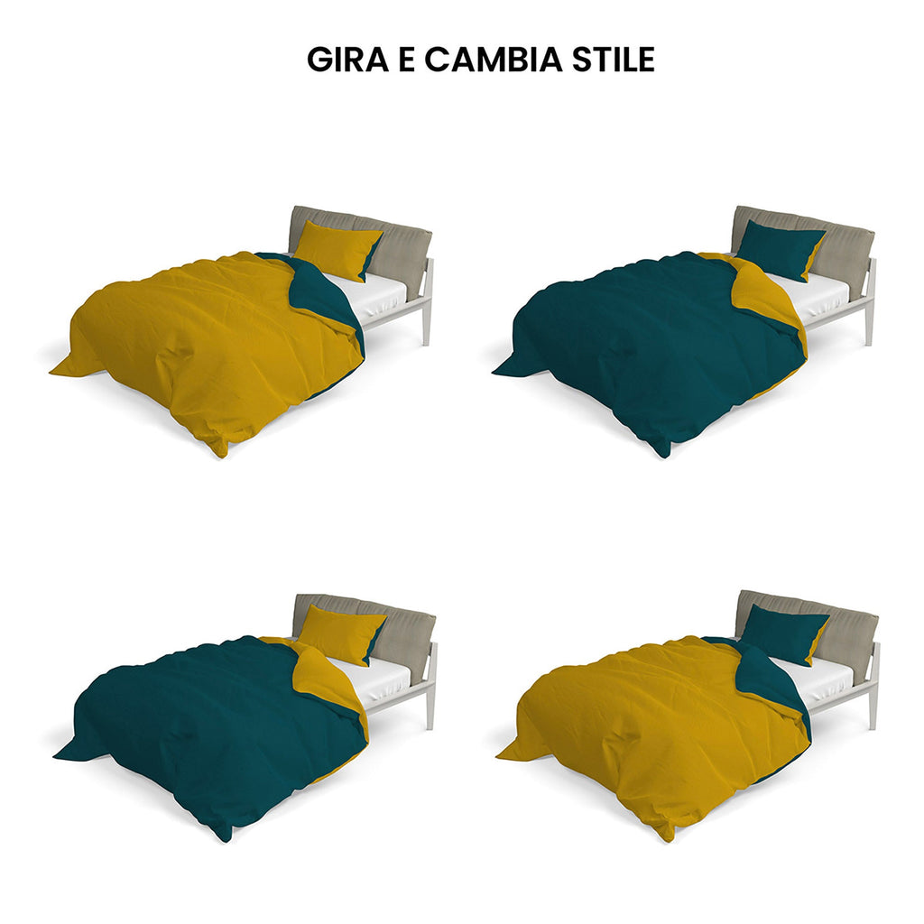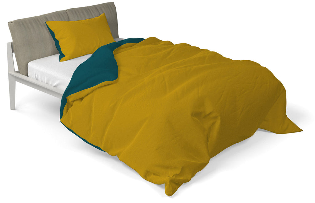 Bettbezug mit Tasche und Kissenbezügen Doubleface Ocker / Petrol Green