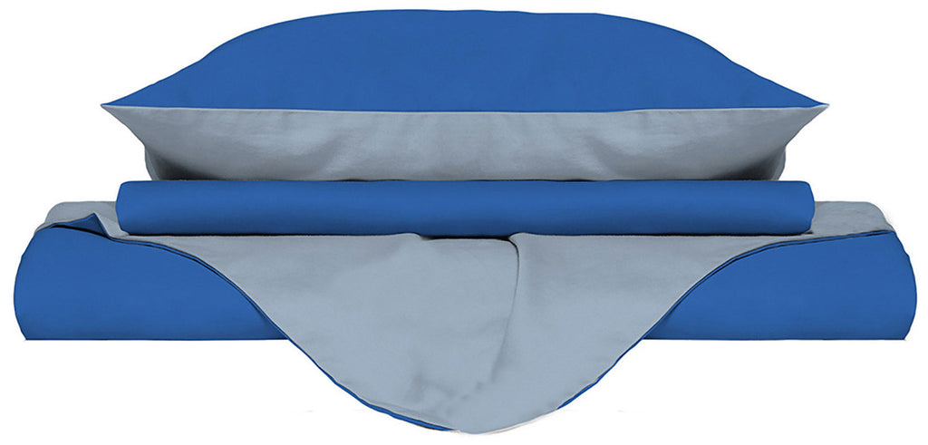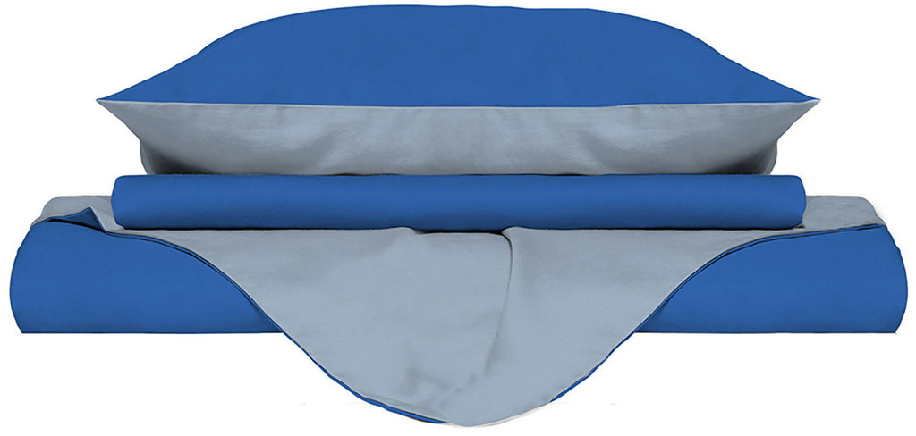 Bettbezug mit Tasche und doppelseitigen Kissenbezügen Royal/Blau