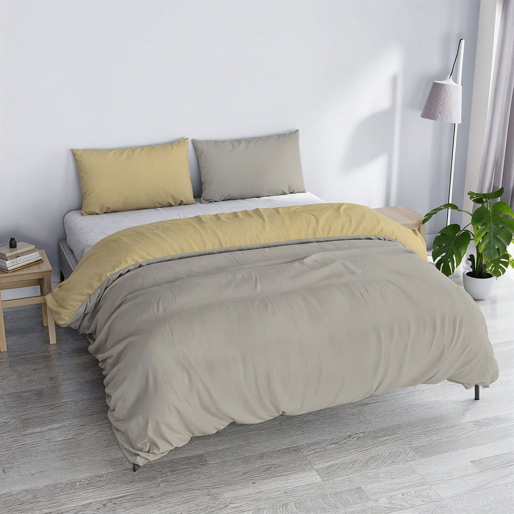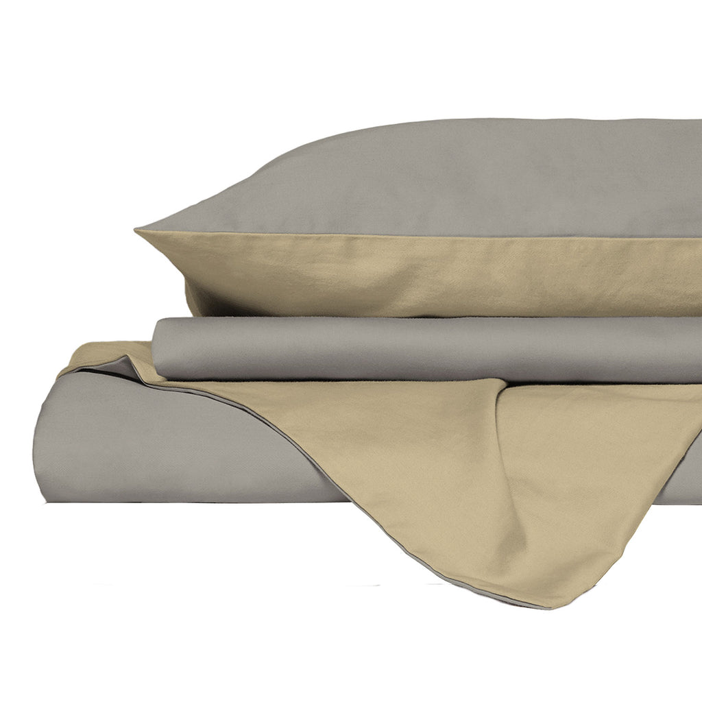 Copripiumino con Sacco e Federe in Tinta Unita Double Face Linea Vera Grigio Chiaro e Panna