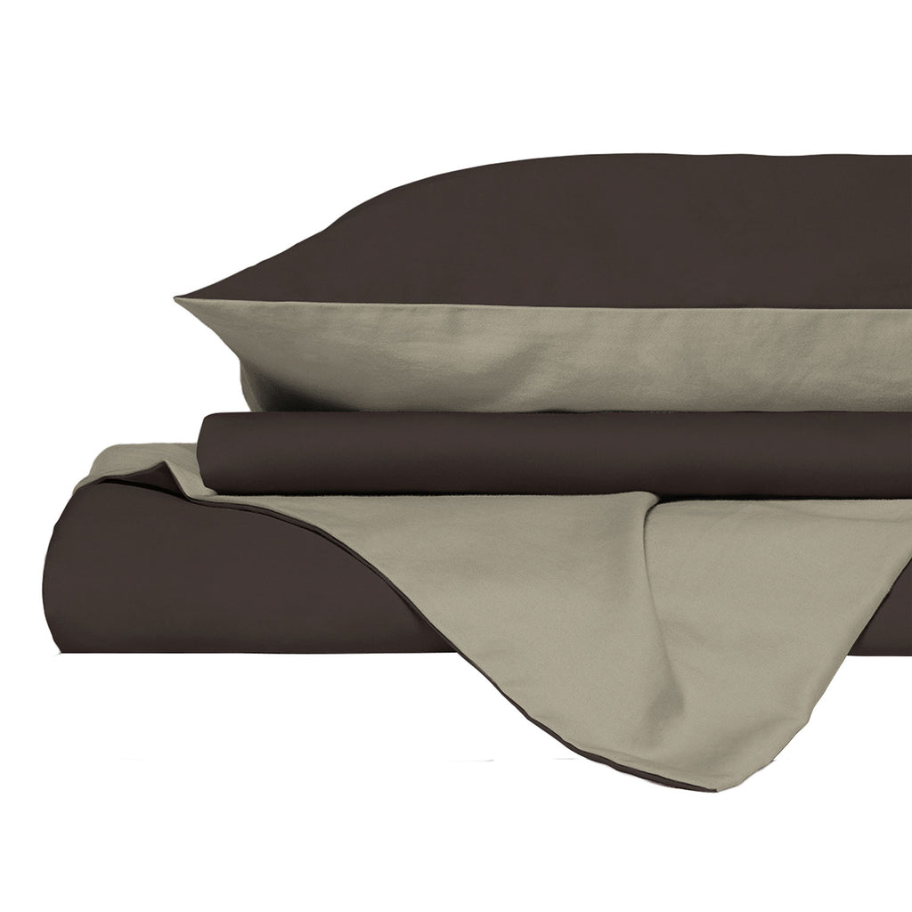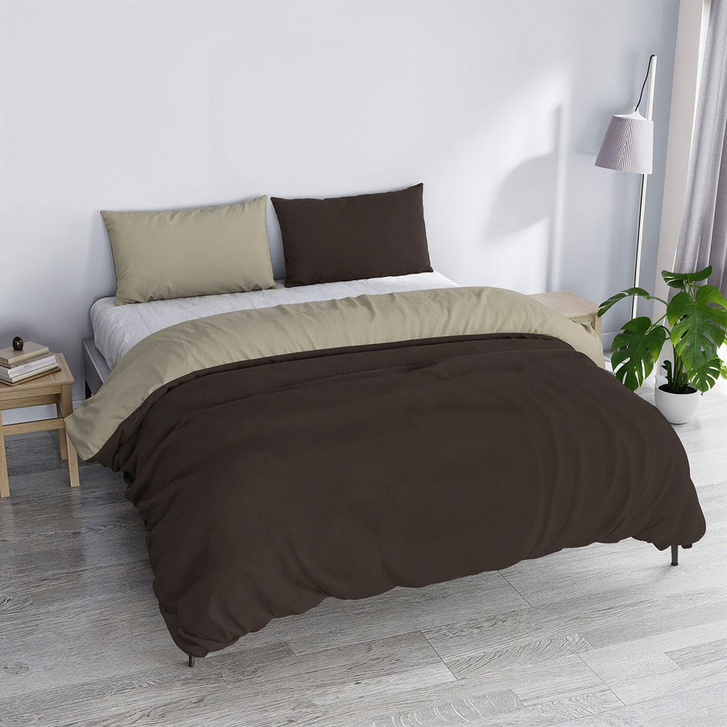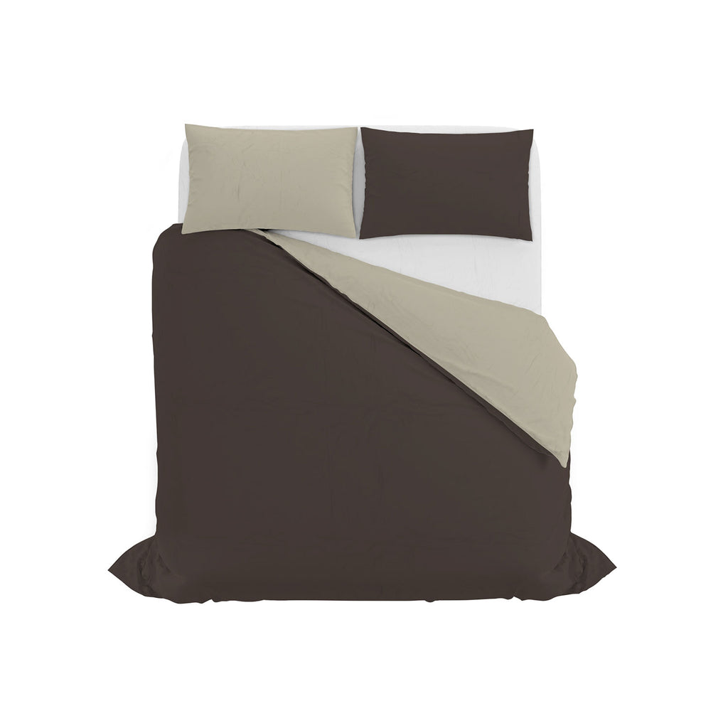 Copripiumino con Sacco e Federe in Tinta Unita Double Face Linea Vera Marrone e Tortora