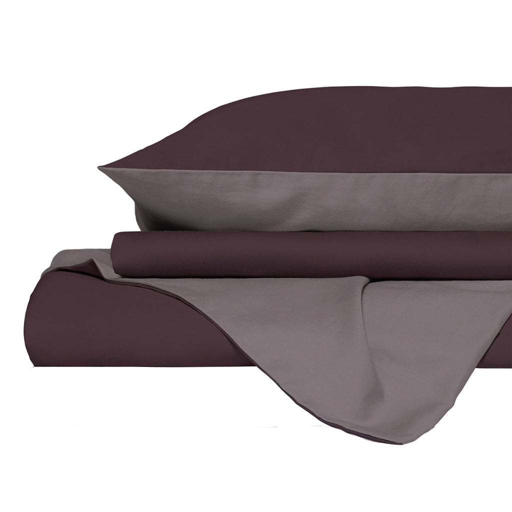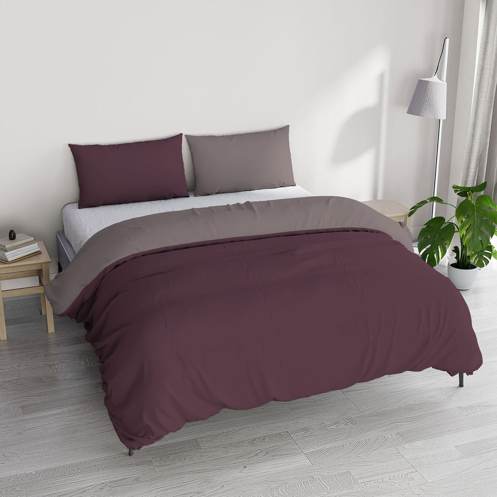 Copripiumino con Sacco e Federe in Tinta Unita Double Face Linea Zoe Vinaceo e Rosa Antico