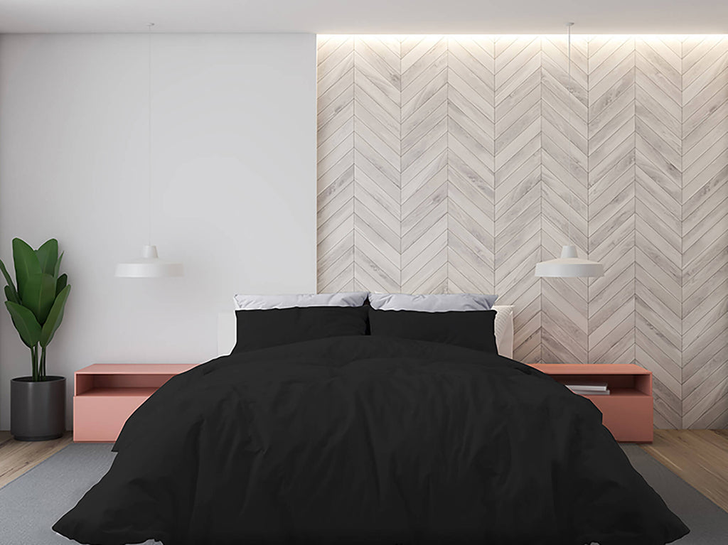 Bettbezug für Doppelbett mit Tasche und Kissenbezügen, einfarbig, aus schwarzer Mikrofaser