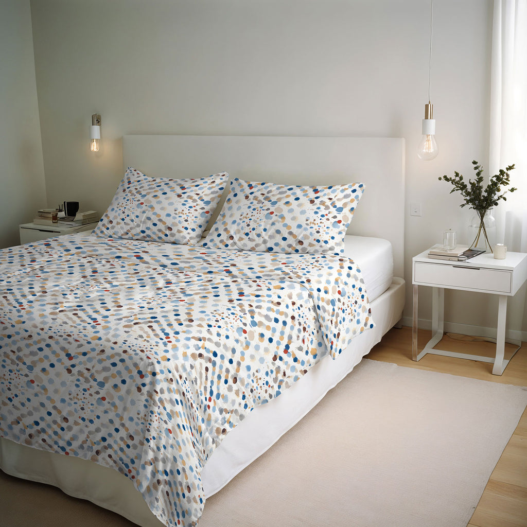 Rinnova la tua camera da letto con la splendida parure copripiumino linea River, completa di sacco e federe stampate con fantasie eleganti e moderne. Disponibile in molte varianti di design, questa parure è lavorata con cura in Italia, garantendo qualità e stile. Realizzata in un tessuto composto dall’80% cotone e dal 20% di fibre miste riciclate, offre un comfort morbido e sostenibile. Perfetta per chi cerca un prodotto di alta qualità, eco-friendly e dal design ricercato.