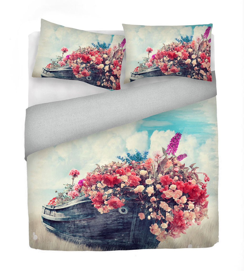 Bettbezug mit Aufdruck auf der Doppeltasche und den Kissenbezügen