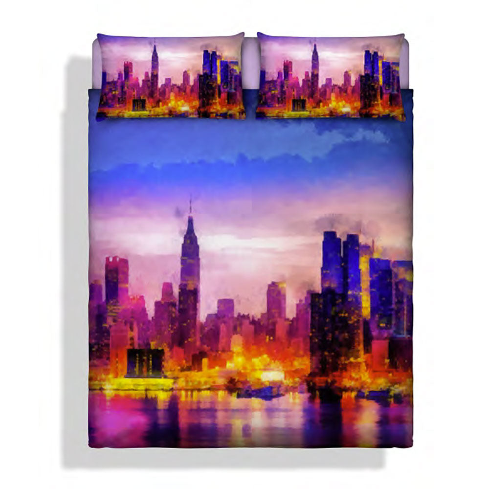 Bettbezug mit Aufdruck auf der Doppeltasche und den Kissenbezügen