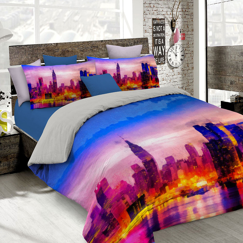 Digital bedrucktes Bettbezug -Set bestehend aus Bettbezug und Kissenbezügen . Ideal für diejenigen, die ihr Bett mit originellen und einzigartigen Bildern schmücken möchten. Diese Kollektion wird durch hochwertige Produkte repräsentiert, die sich durch Digitaldrucke auf Stoffen aus 100 % Baumwolle auszeichnen, die jedes Detail des Bildes hervorheben, das hell, definiert und vor allem solide ist, wenn es gewaschen wird. Der Druck wurde vollständig in Italien entwickelt, zusammengesetzt und genäht und befindet sich in der Mitte der Tasche und der Kissenbezüge.